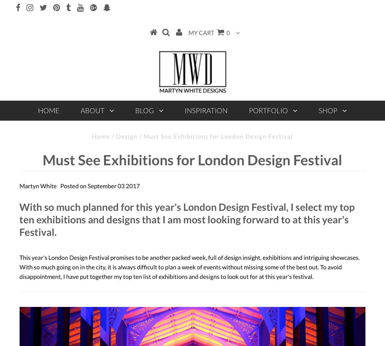 2017 | "London Design Festival - Top Ten Exhibitions To See",Martyn White Designs blog