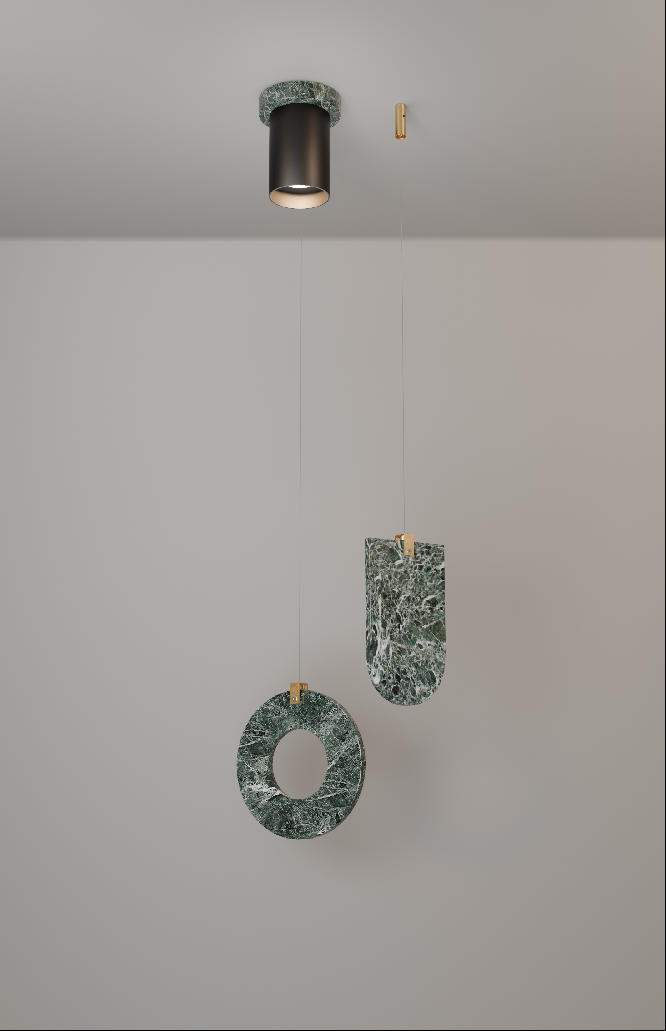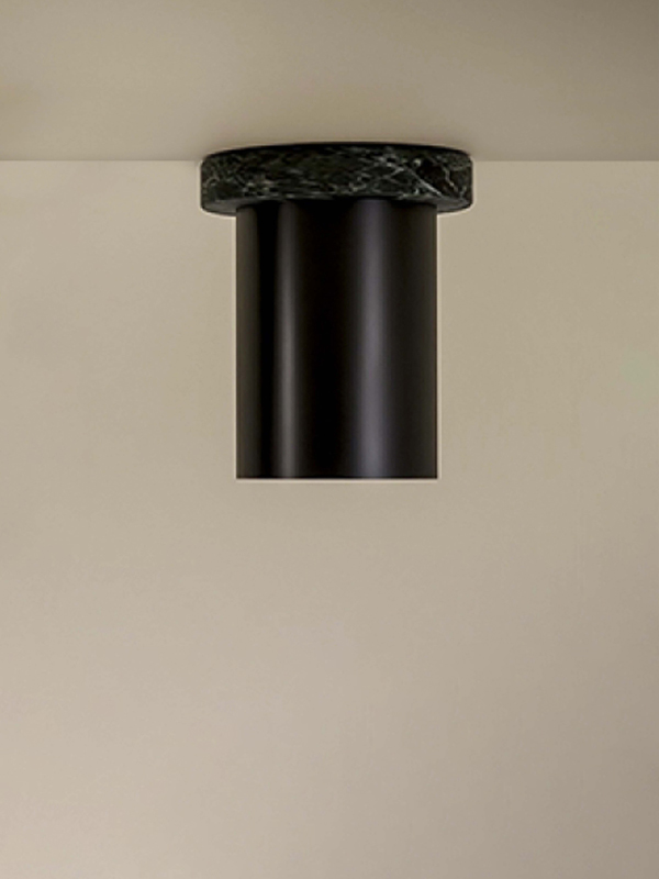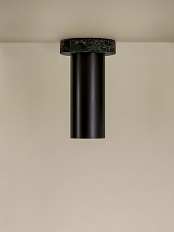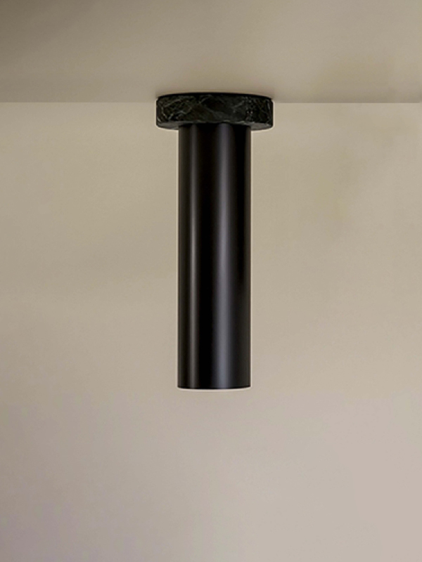 CILINDRO D is a ceiling fixture functions as a down spotlight, featuring a sleek metal body and a sturdy marble base. Its minimalist design not only enhances the aesthetic of any space but also provides focused illumination where it’s needed most.