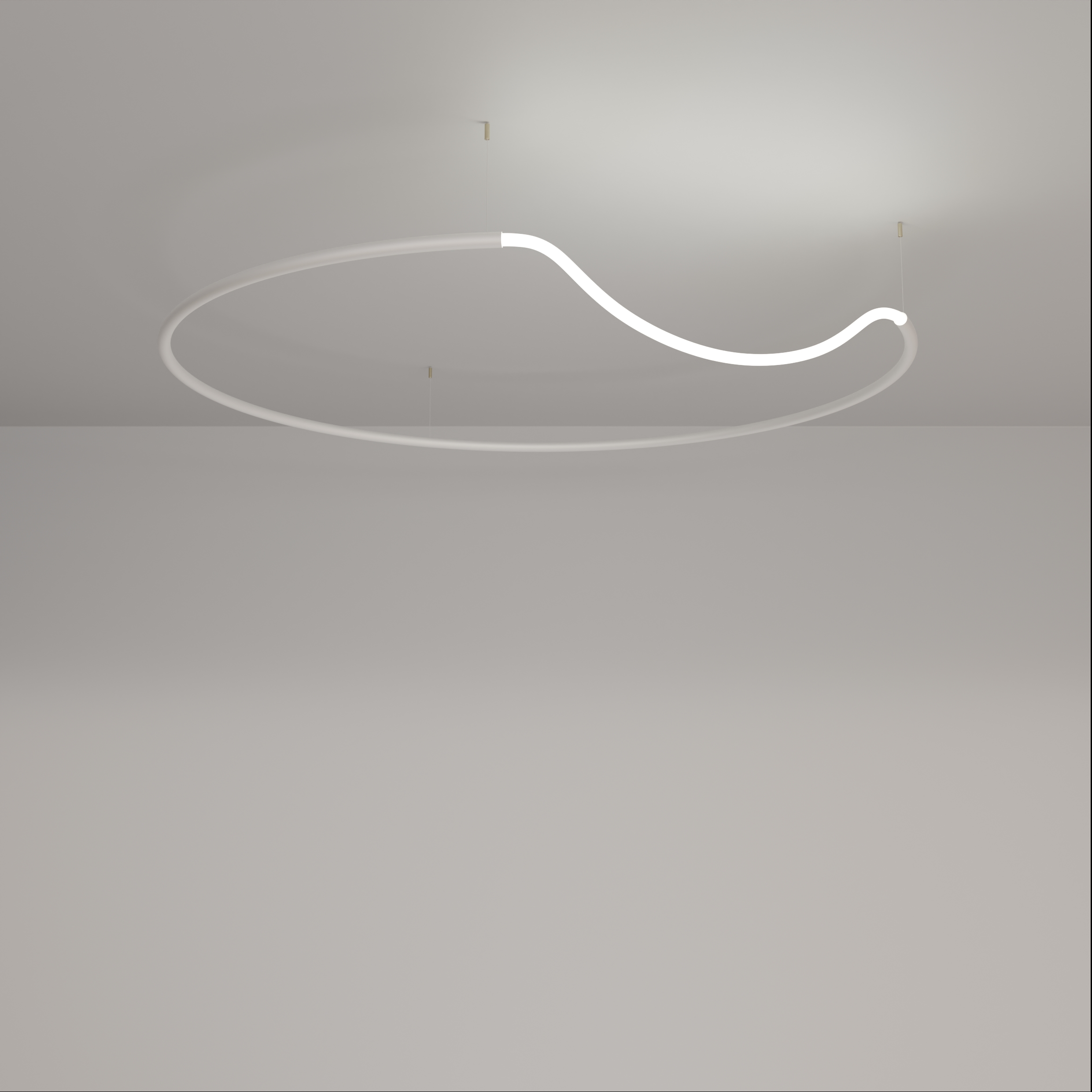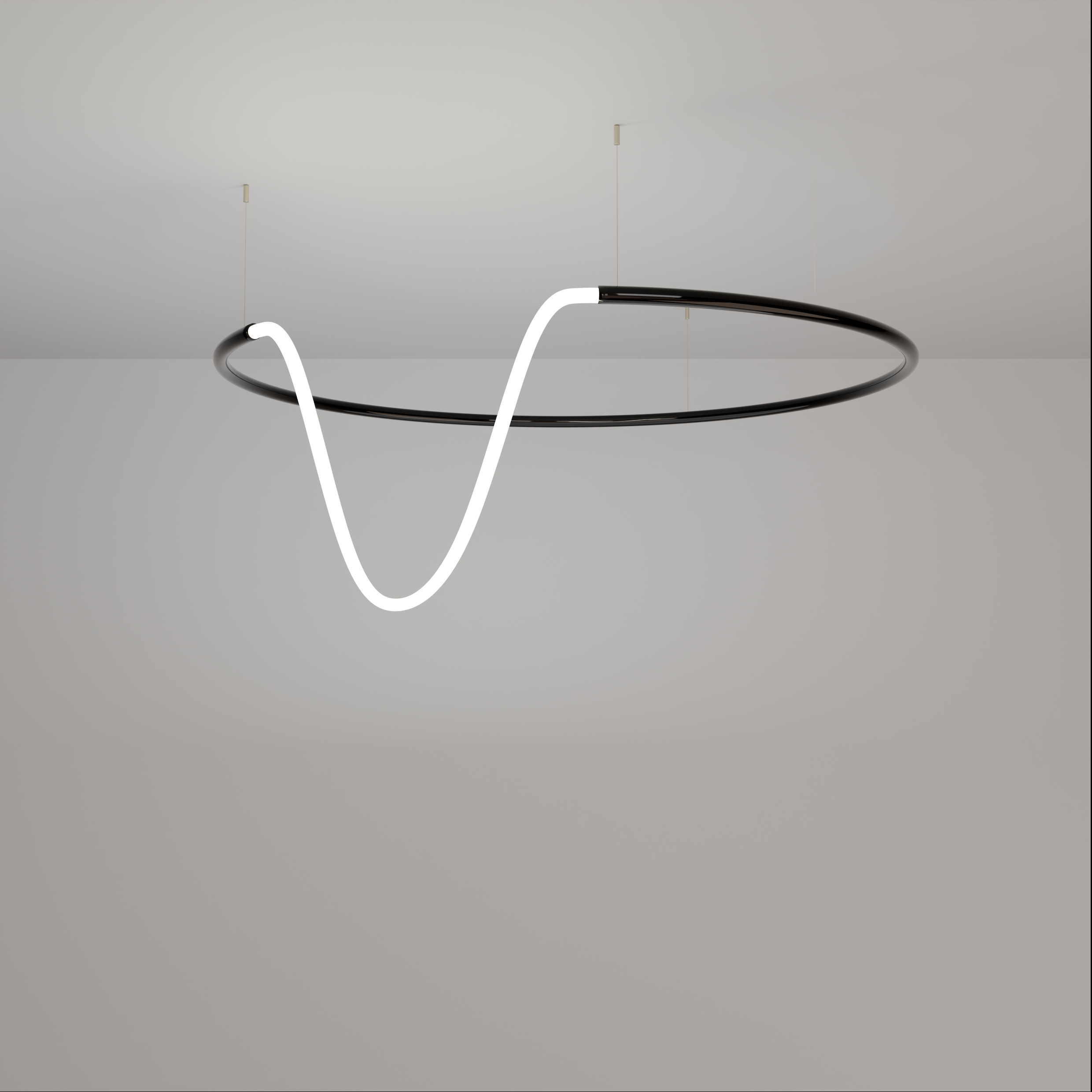 The simplicity of a giant metal circle, made of aluminum or brass, partly incandescent and beginning to melt, adds unique curve to its form. MELT is a fixture captures this precise moment that the metal starts to soften, melt and glow. The curve is illuminated with a flexible LED source.