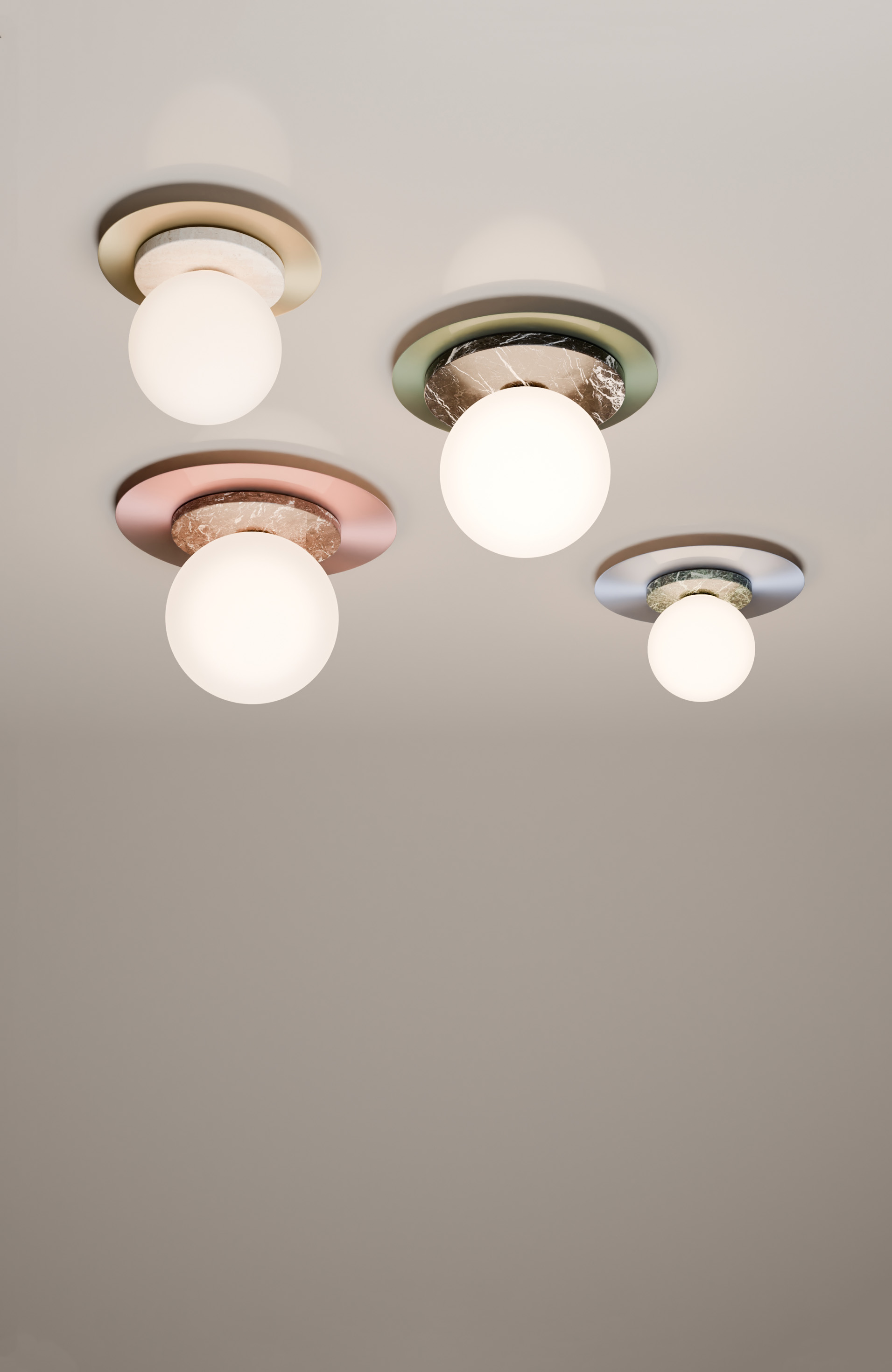 LUA C, “moon” in Portuguese. The opal sphere-shaped diffuser, crafted from two layers of mouthblown glass with a matte finish, creates a warm and inviting atmosphere in any space. Meanwhile, the marble and brass components add a subtle touch of luxury and timeless elegance. Whether you choose to incorporate two elements or an infinite number, LUA allows you to design stunning installations, providing a customized solution for every project.
