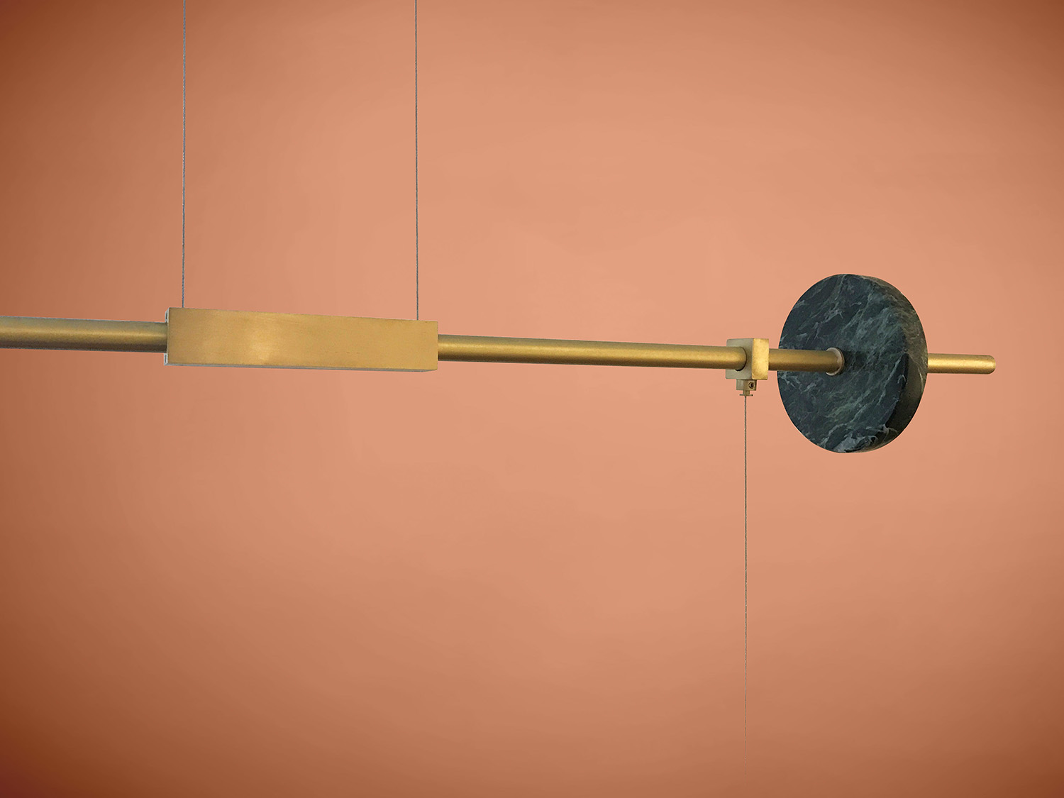 LIBRA luminaire is an elegant suspension chandelier featuring a pendulous, circular marble weight that allows for the adjustment of the main bar’s angle. Crafted from brass, it showcases a halo LED light source mounted on a traditionally sand-cast bulb holder, seamlessly blending sophistication and functionality into a striking design.